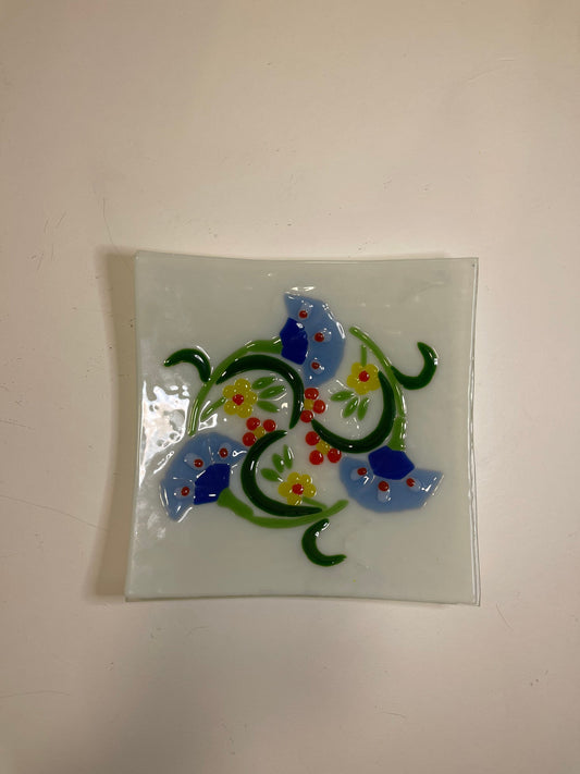 Geschmolzene Glasplatte mit osmanischen Blumenmotiven | Dekorative Glaskunst | modernes Glas | Einweihungsgeschenk