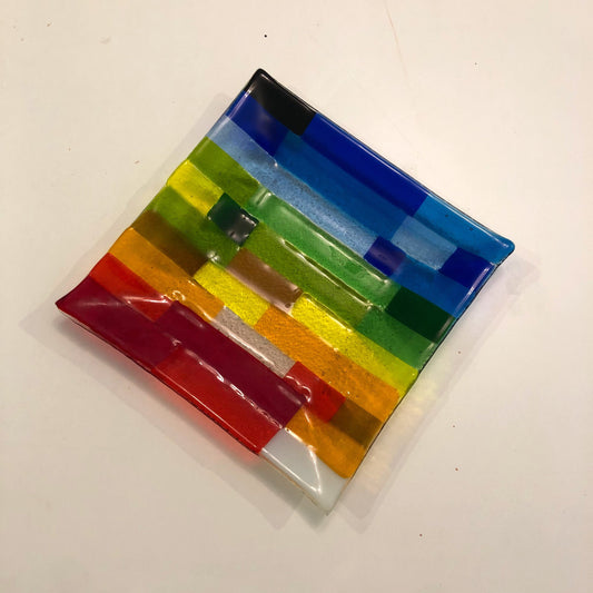 Geschmolzener Glasteller, moderner und handgefertigter Teller in Regenbogenfarben, einzigartiges Geschenk