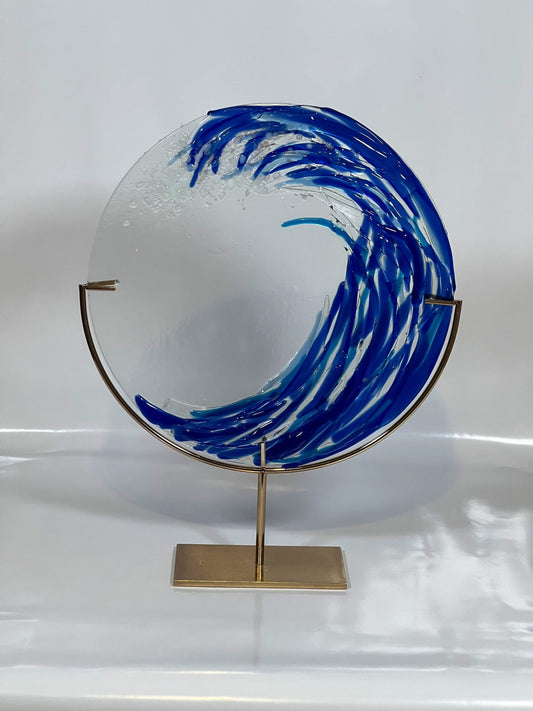 Meereswellen-Skulptur aus geschmolzenem Glas • Strand-Sonnenfänger für Zuhause • Einzigartiges Art Deco