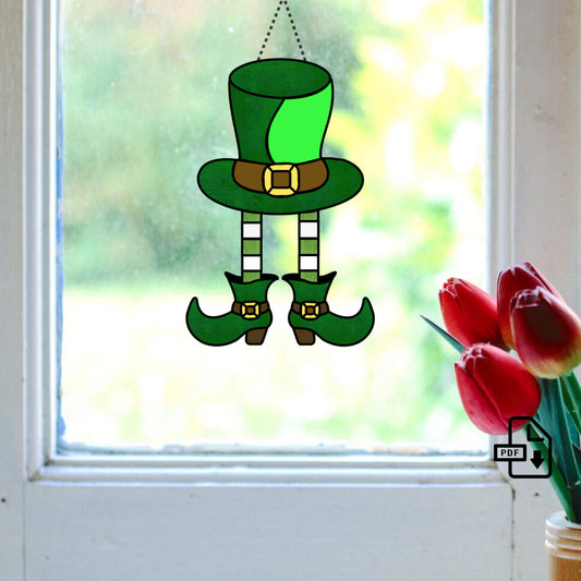 Koboldhut- und Stiefelmuster • St. Patrick's Day-Muster aus Buntglas