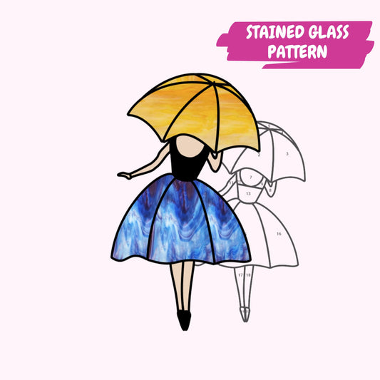 Mädchen mit Regenschirm-Buntglasmuster - Modernes Glasmuster