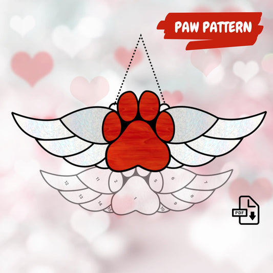 Haustierpfoten-Buntglasmuster • Engelsflügel-Buntglasmuster für Hunde und Katzen