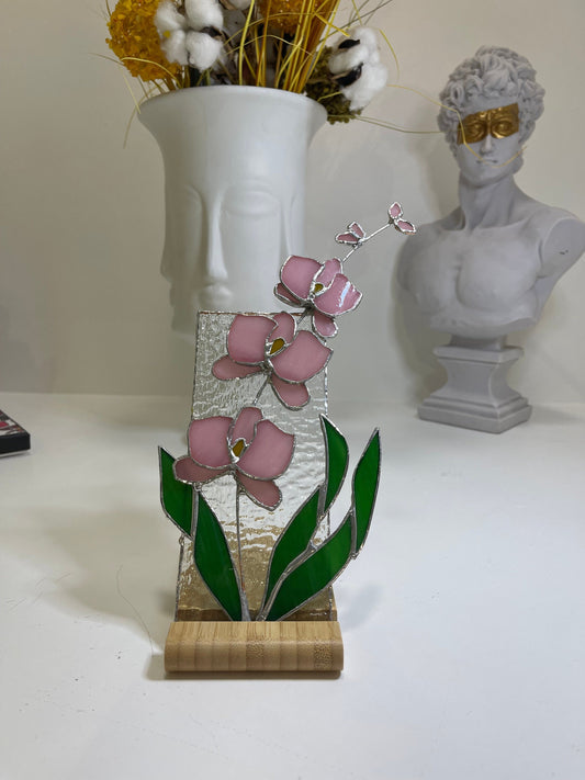 Buntglas-Orchideenpaneel mit Ständer • 3D-Buntglas-Wohndekoration