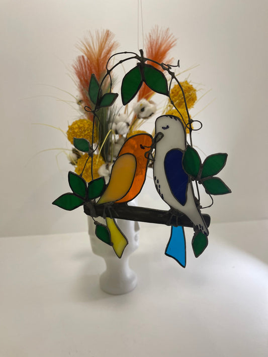 Liebesvögel Buntglas-Sonnenfänger, Geschenk für Verliebte