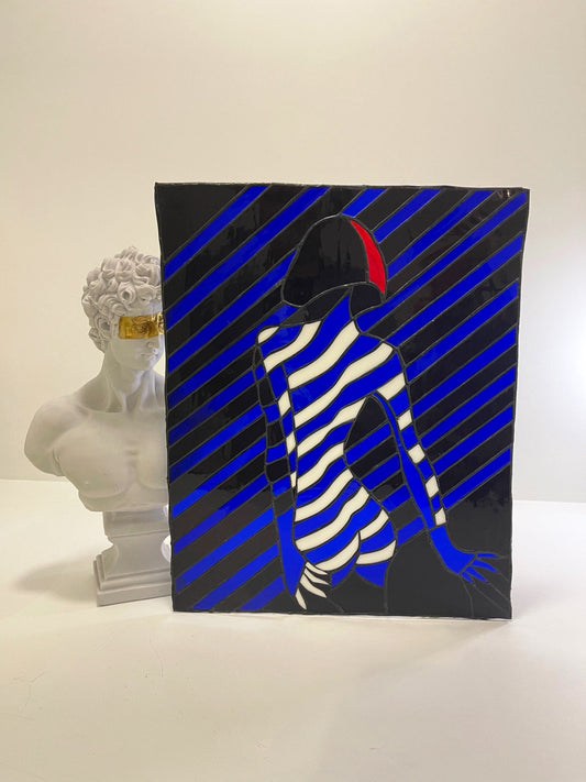 Nackte Frau aus Buntglas, moderne Glaskunstplatte, nackte Mädchen-Wohnkultur