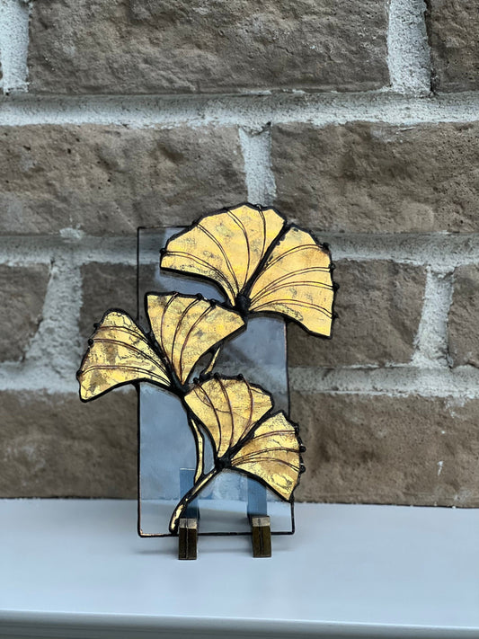 Ginkgoblatt-Buntglasplatte mit Ständer | Buntglas Ginkgo Biloba Wohndekoration
