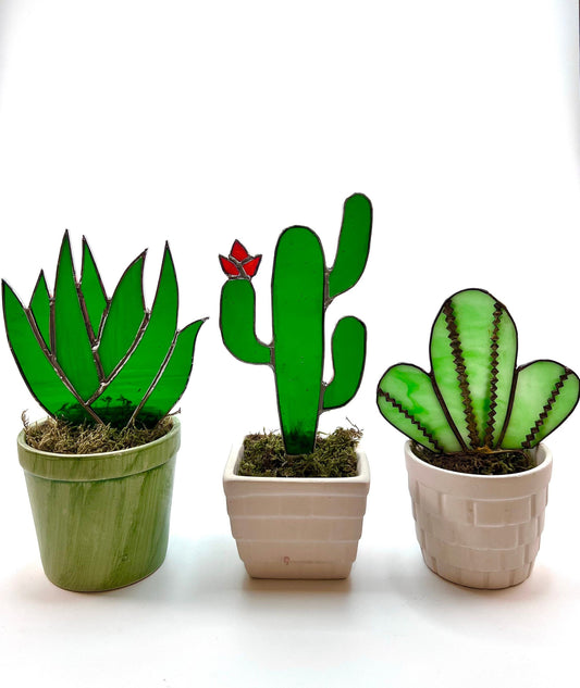 Buntglas-Pflanzenstab • Buntglas-Kaktus und Agavenblätter