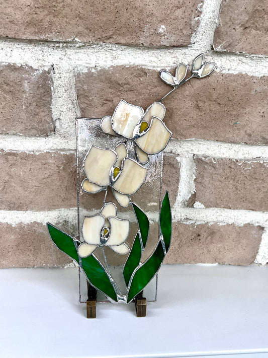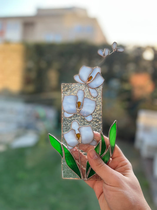 Orchideen-Buntglasplatte • 3D-Buntglasblume • Geschenk für Sie