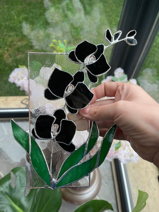 Buntglas-Blumenpaneel mit Ständer, Buntglas-Orchideen-Sonnenfänger als Wohndekoration