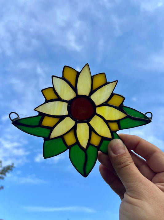 Sonnenblumen-Sonnenfänger aus Buntglas – Sonnenblumen-Fensterbehang