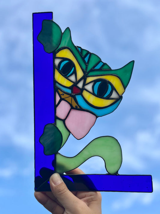 Buntglas-Katzenfensterecken-Sonnenfänger – Geschenk für Katzenliebhaber