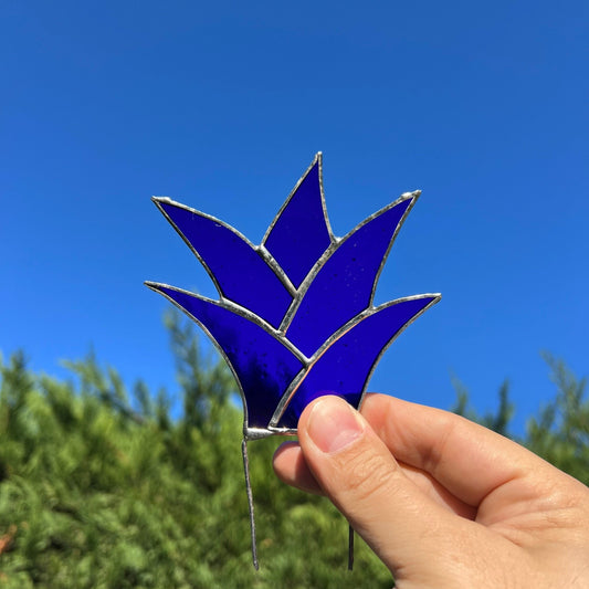 Blauer Agaven-Sonnenfänger aus Buntglas – Agaven-Pflanzenstecker aus Buntglas
