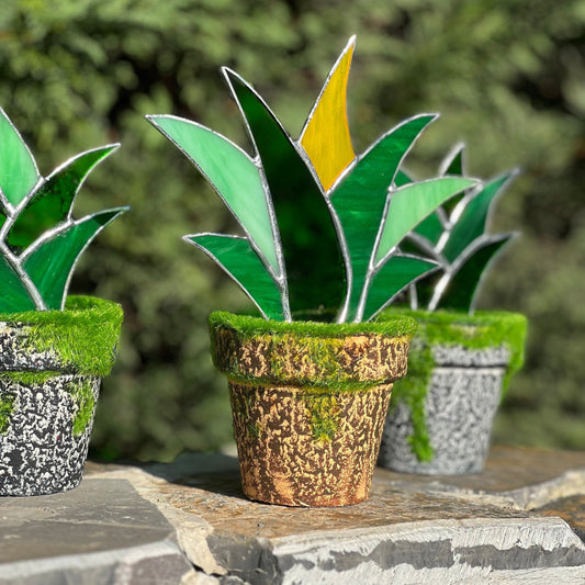 Buntglas-Sukkulenten – Agaven-Aloe-Pflanze aus Buntglas